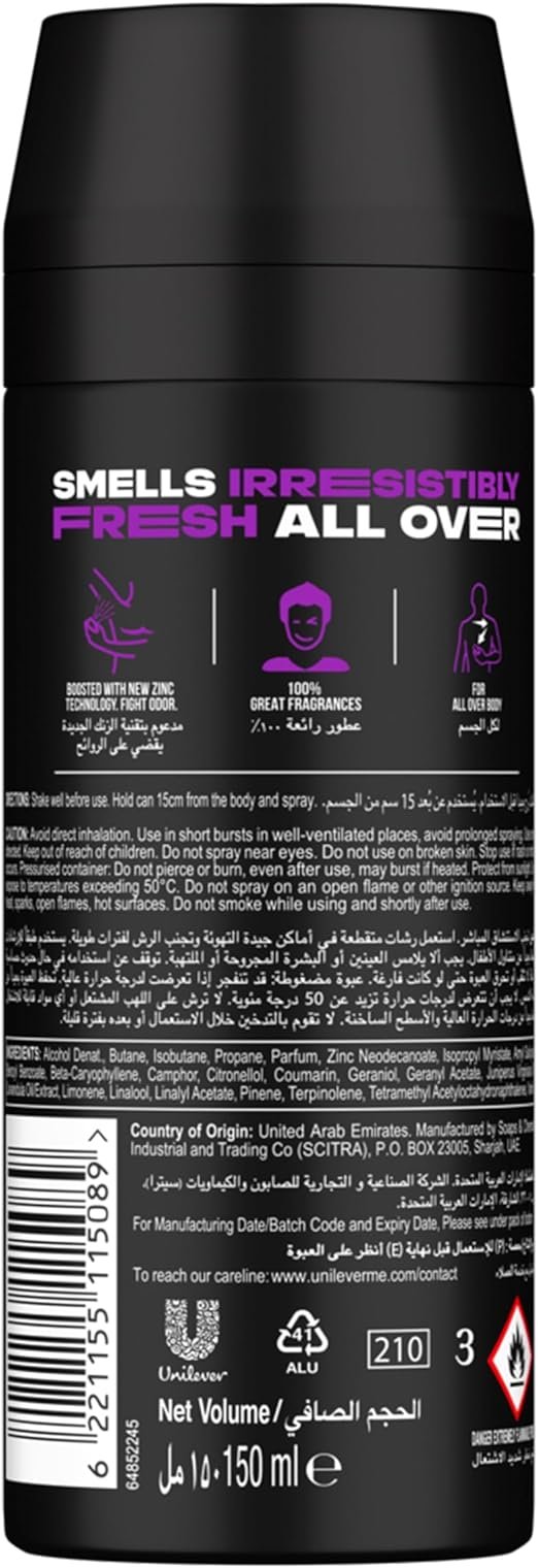 Packaged in a sleek black recyclable can, this body spray is practical, stylish, and perfect for everyday wear. Pair it with other scents from the AXE collection to complete your grooming routine.