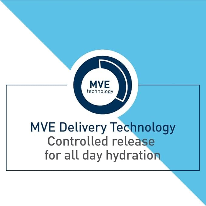 Texture: Creamy formulation with water splash imagery (suggesting hydration)