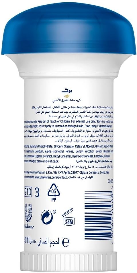 Dove Women Antiperspirant Deodorant Cream, for 24H Protection, Original, Alcohol Free with ¼ Moisturising Cream, 50ml, Pack of 2