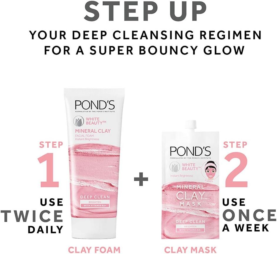 Pond’s White Beauty Mineral Clay Instant Brightness Face wash Foam 90g