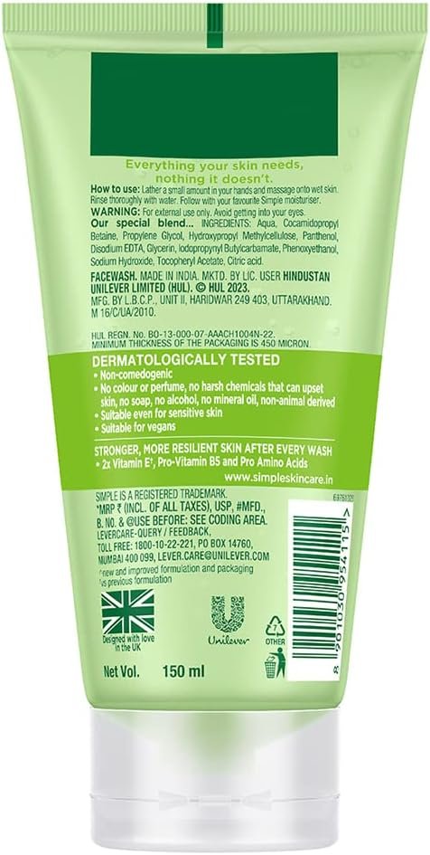 Be the first to review “Simple Refreshing Facial Wash, Make-Up Remover With Pro-Vitamin B5, Vegan, No Perfume And Alcohol, Vitamin E Anti-Oxidant, Soap-Free, Hypoallergenic, Sensitive Skin, 150Ml”