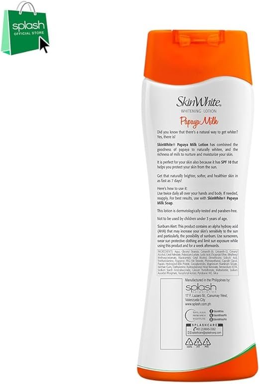 Skin White Whitening Lotion Papaya Milk SPF 10 – Whitens Skin in 7 Days – For Lighter, Softer and Healthier Skin – 200ml