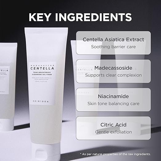 The SKIN1004 Madagascar Centella Tone Brightening Cleansing Gel Foam is a gentle yet effective facial cleanser that brightens dull skin while maintaining its natural moisture balance. Enriched with Centella Asiatica Extract from Madagascar, it soothes and strengthens the skin barrier, reducing irritation and dryness.