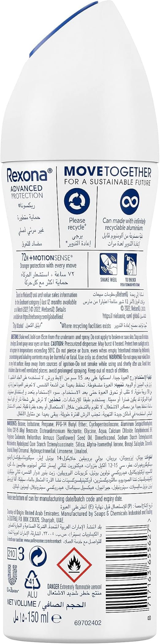 Unilever REXONA Women Antiperspirant Deodorant Spray, 72 hour sweat & odor protection*, Invisible, with MotionSense technology, 150ml